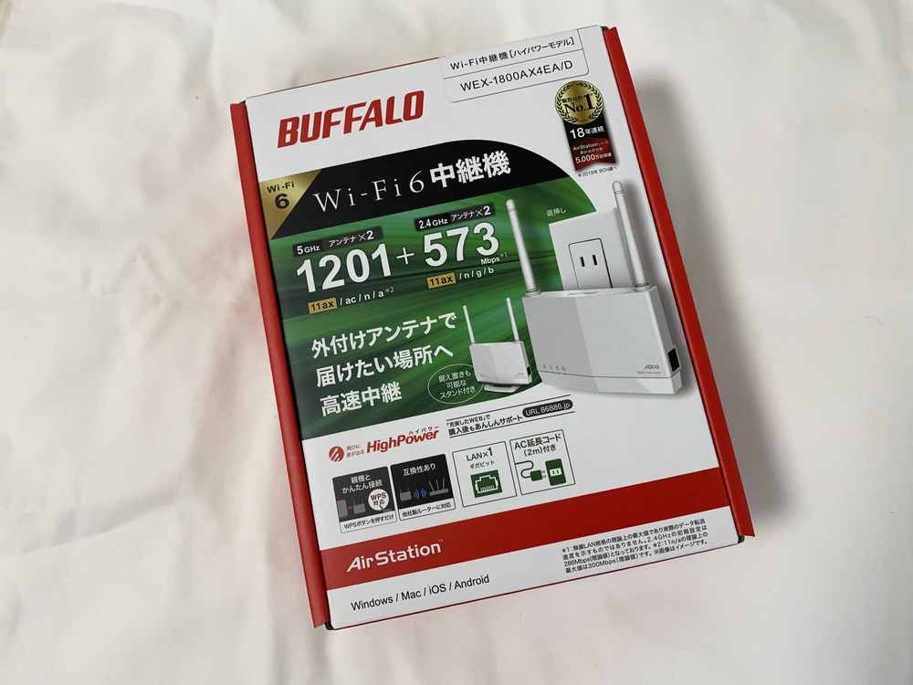 そのため、Wi-Fi中継器のバッファローWEX-1800AX4EA/Dからイーサネットケーブルを引っ張ってThunderstorm AR7に接続して、インターネット環境を用意しました。